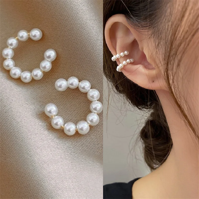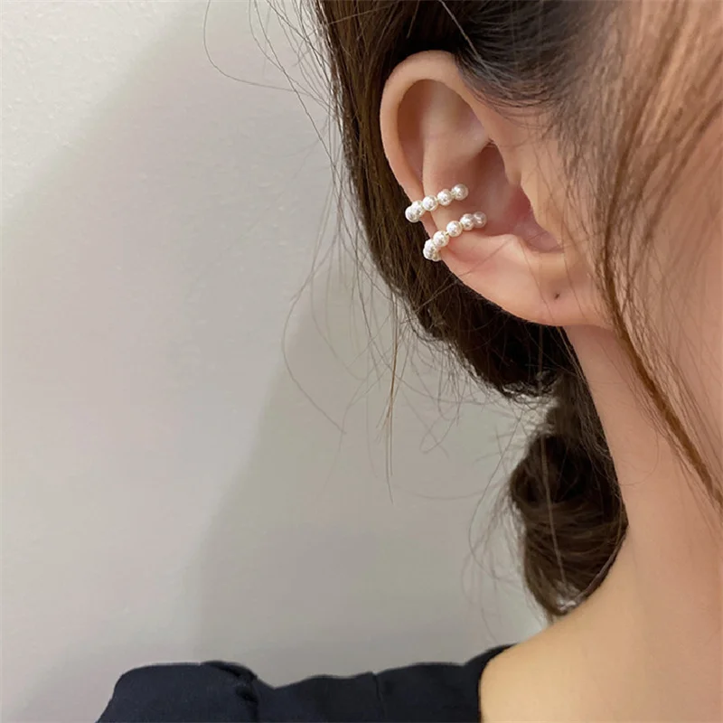 Pearl Ear Cuff Clip Earrings Non-Piercing Bone C-sh